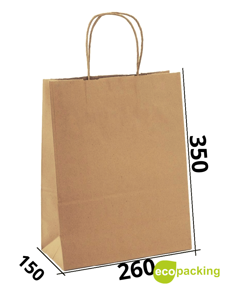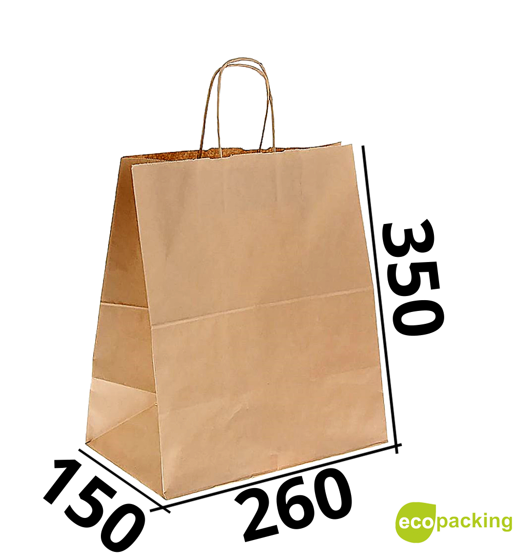 Бумажный крафт пакет с кручеными ручками 260/150/350