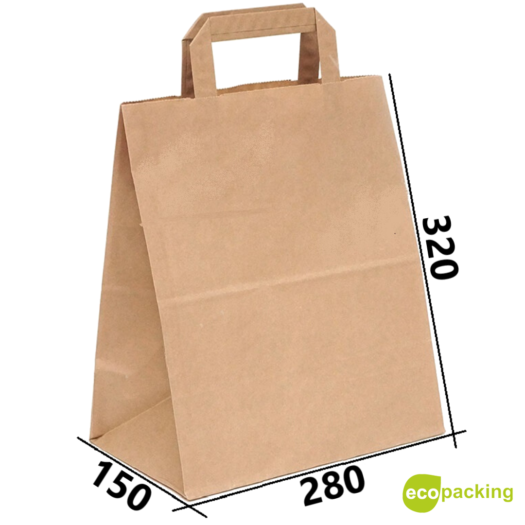 Описание товараБумажный пакет с плоскими ручками из "крафт" бумаги 70 гр./м2 и прямоугольным дном