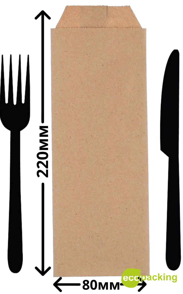 Бумажный пакет 80/220 конверт для приборов Крафт