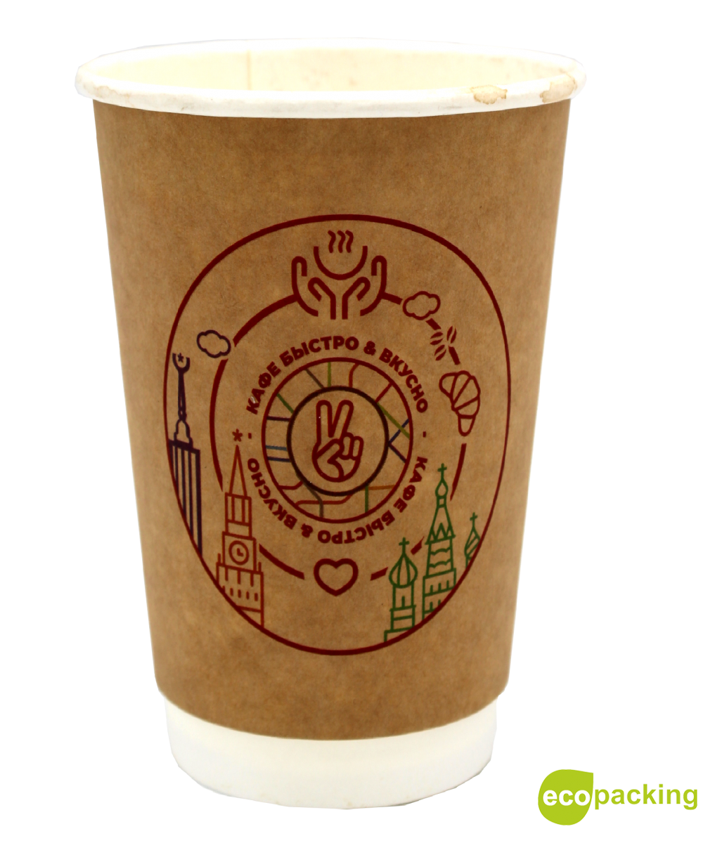 Двухслойный бумажный стакан 450мл с логотипом "Метро быстро и вкусно"