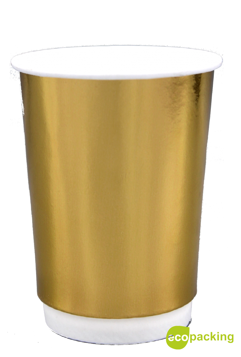 Описание товараДвухслойный стакан декорированный металлизированной пленкой "золото" объемом 350мл