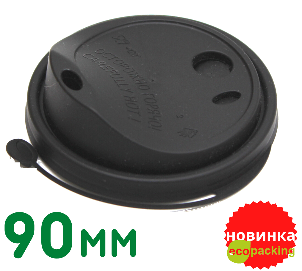 КРЫШКА ПЛАСТИКОВАЯ 90мм "ЧЕРНАЯ"С КЛАПАНОМ ДЛЯ СТАКАНОВ 350/450МЛ (PTKLLC)
