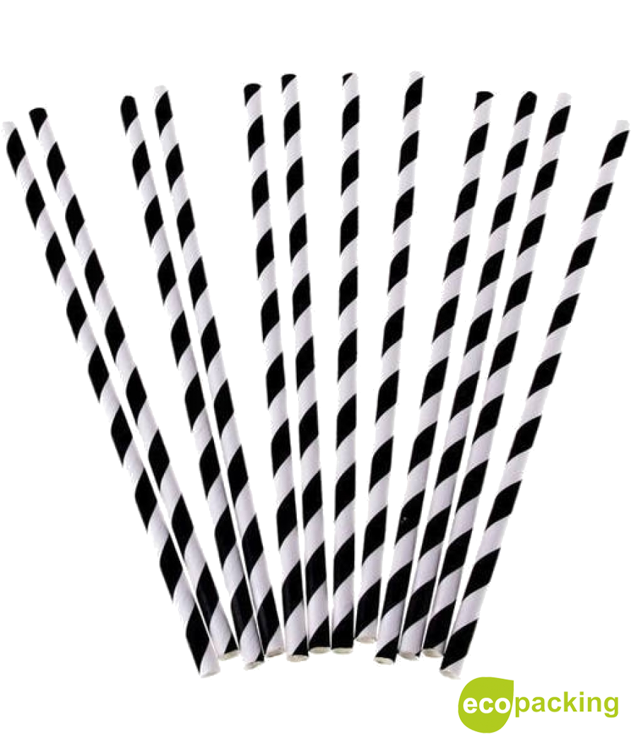 Трубочки бумажные 195mm*7mm ЧЕРНО-БЕЛЫЕ