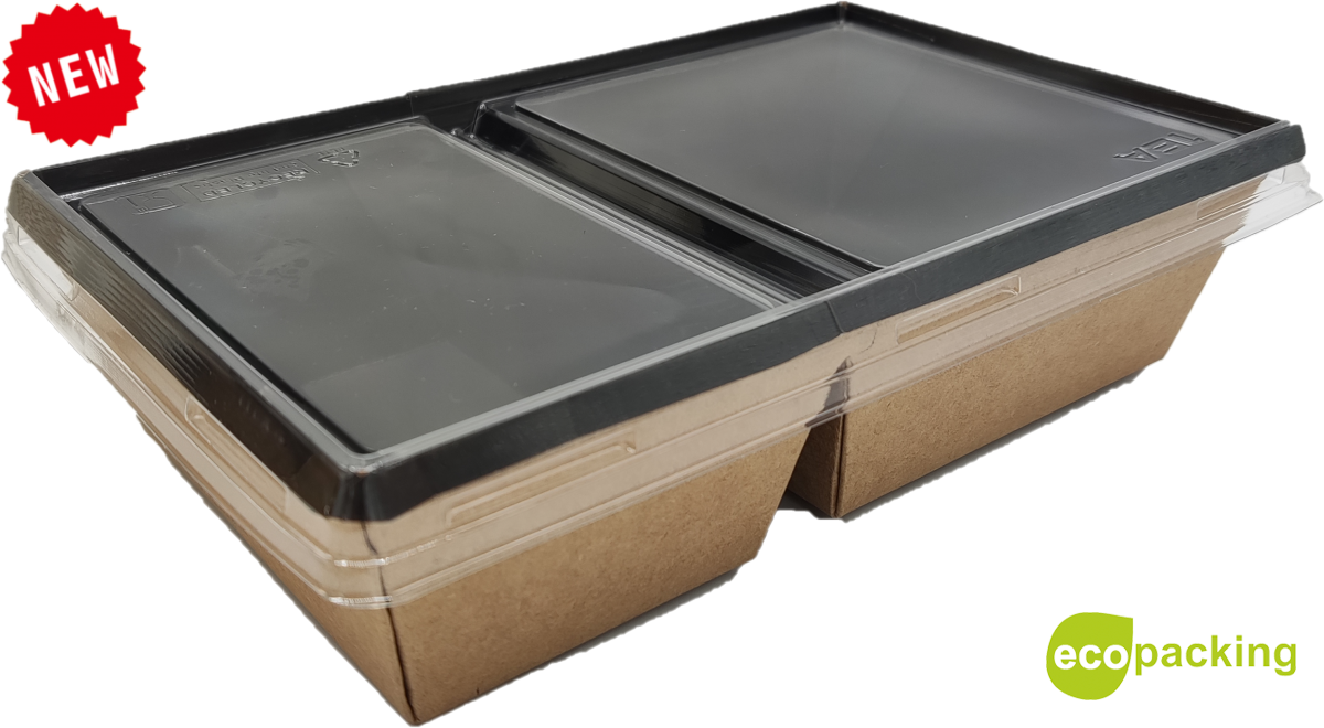 Описание товараДвухсекционный бумажный контейнер с прозрачной крышкой (60%/40%)