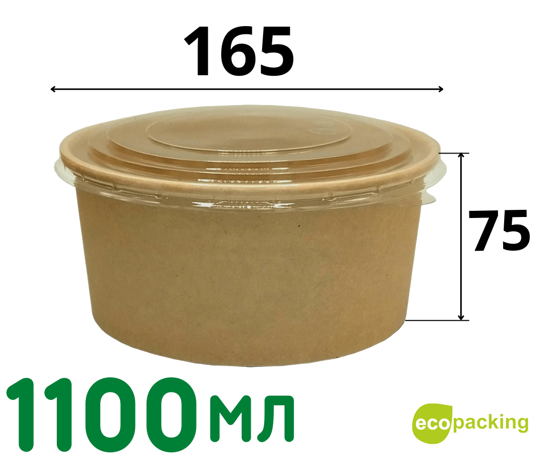 Описание товараКонтейнер картонный c круглым дном 11000 мл "Крафт" с пластиковой крышкой для горячих и холодных блюд.