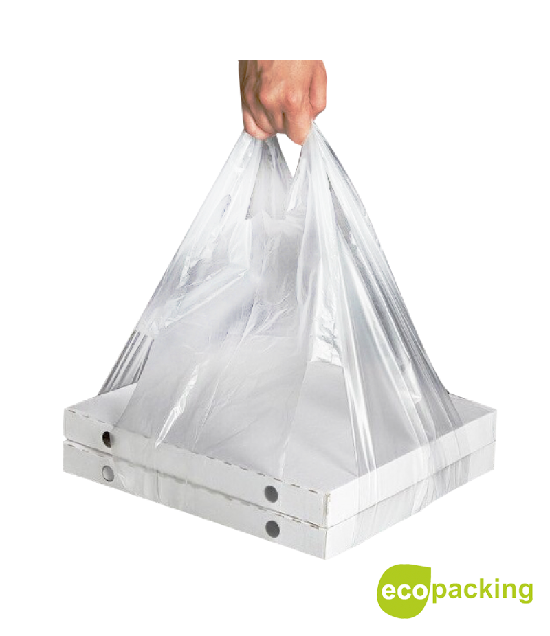 полиэтиленовый пакет для переноски(транспортировки) коробок для пиццы.Размер от 24см до 36см