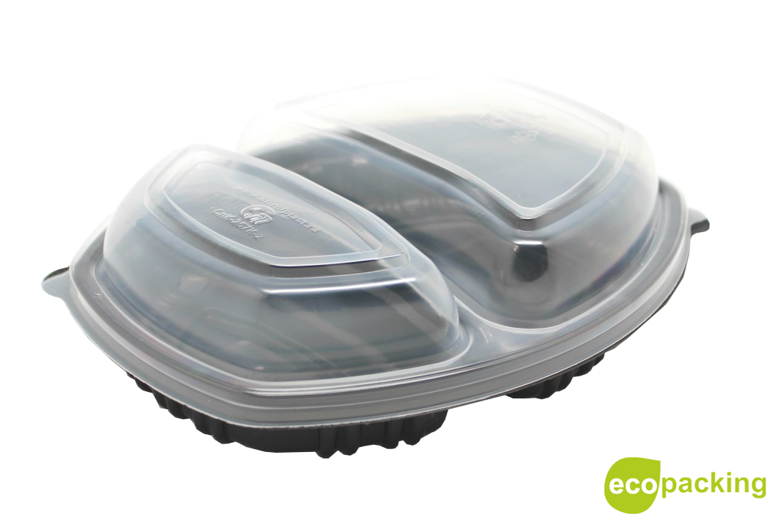 Описание товараПластиковый ланч-бокс двухсекционный с крышкой