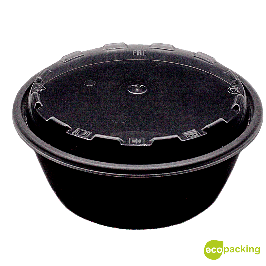 Пластиковый контейнер черный с крышкой СпК-115 350мл (СВЧ+)