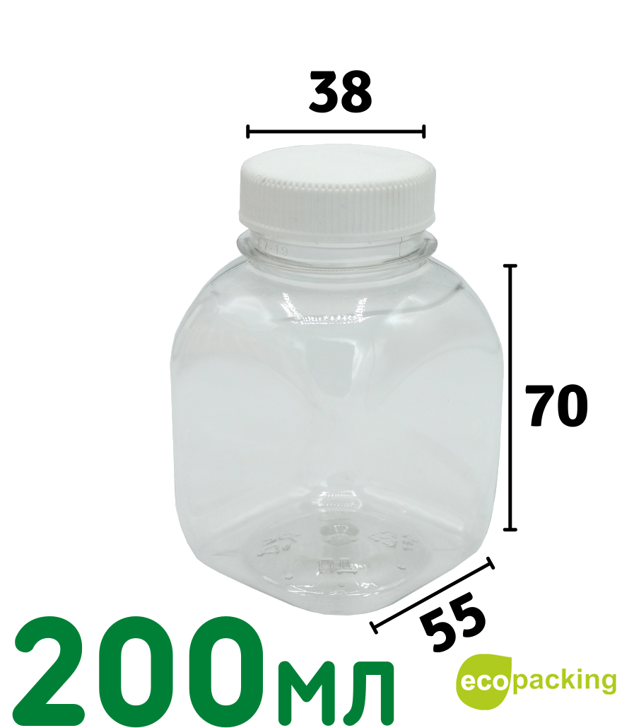 Бутылка 200мл "КВАДРАТ" с широким горлом (38мм)+крышка