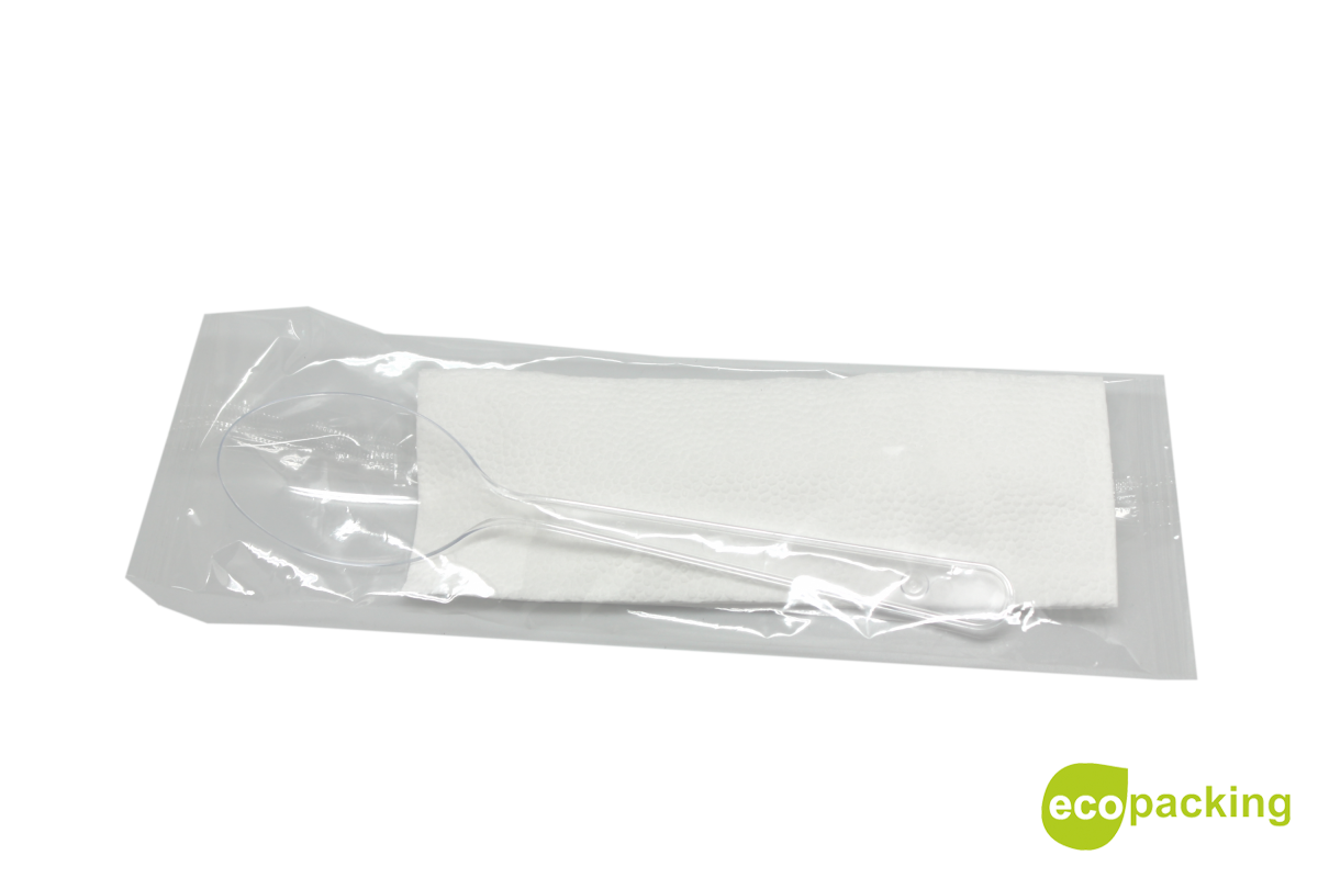 Ложка прозрачная ("премиум") 18 см. Салфетка белая 1сл в индивидуальной упаковке