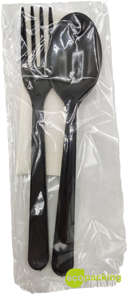 РазмерВилка черная 18 см/Ложка черная 18 см./Салфетка белая 24см