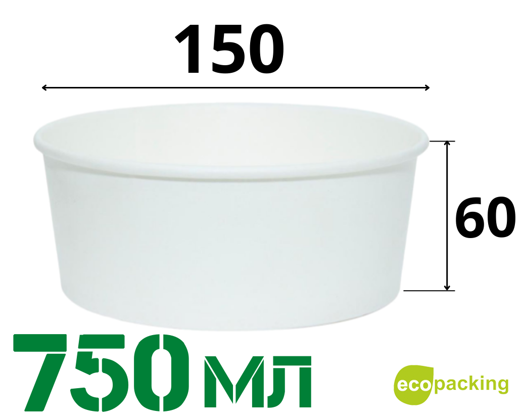 БУМАЖНЫЙ КОНТЕЙНЕР КРУГЛЫЙ 750МЛ "БЕЛЫЙ"