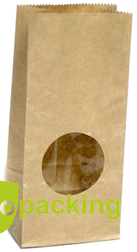 Пакет бумажный (прямоугольное дно) с вклеенным окном