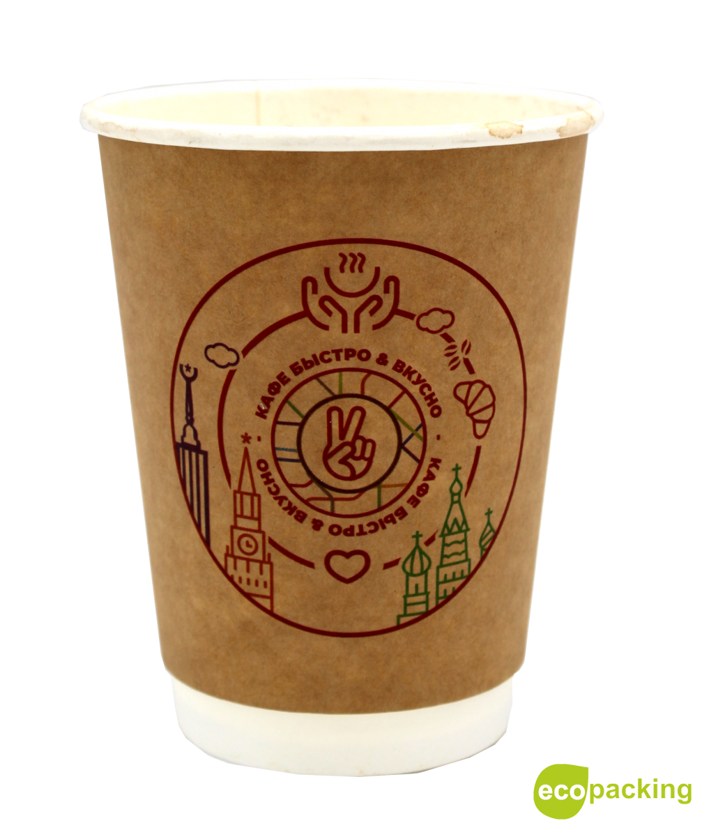 Двухслойный бумажный стакан 350мл с логотипом "Метро быстро и вкусно"