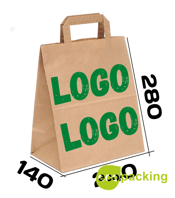 Описание товараБумажный пакет с плоскими ручками с прямоугольным дном.Размер 240*280*140(ширина дна)мм.Крафт бумага бурого(натурального)цвета плотностью 70гр/м2.Пакет с нанесением логотипа,рисунка заказчика в один цвет с одной стороны пакета 2000шт.