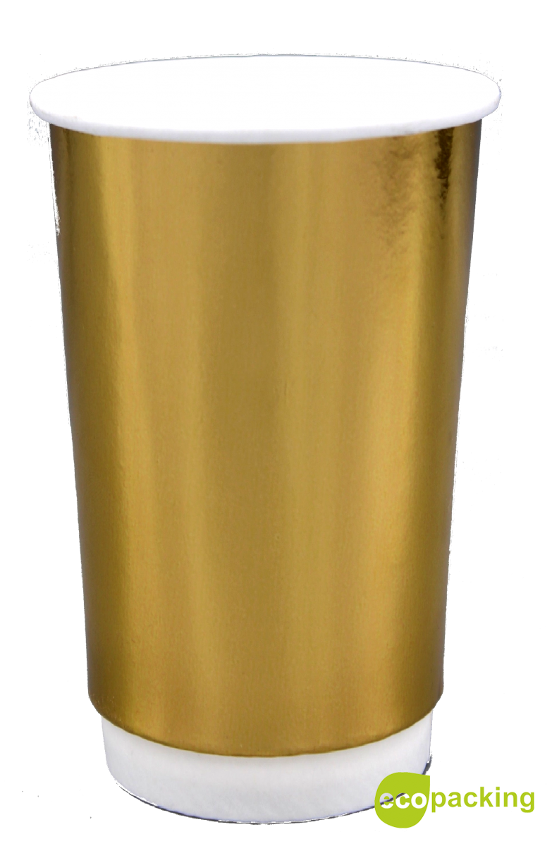 Описание товараДвухслойный стакан декорированный металлизированной пленкой "золото" объемом 450мл