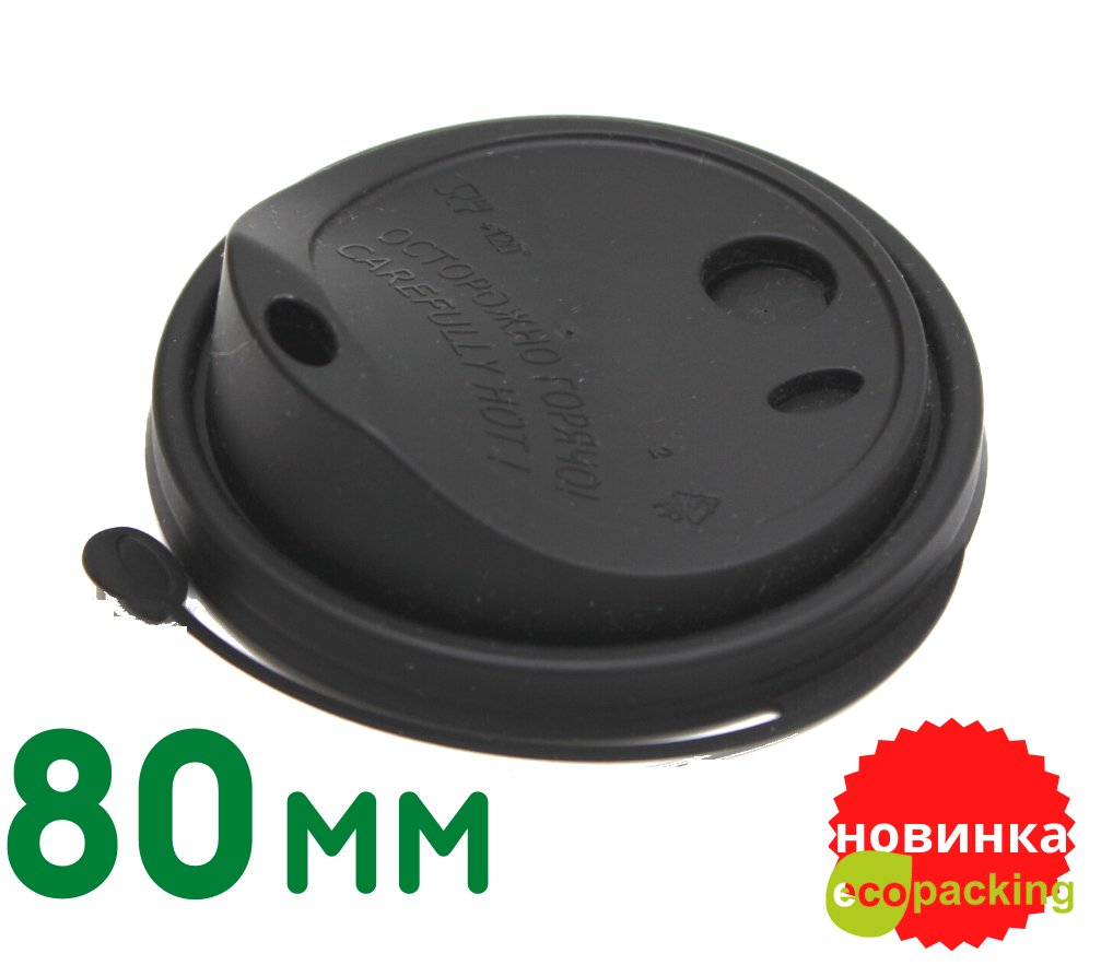 КРЫШКА ПЛАСТИКОВАЯ 80мм "ЧЕРНАЯ"С КЛАПАНОМ ДЛЯ СТАКАНОВ 250МЛ (PTKLLC)