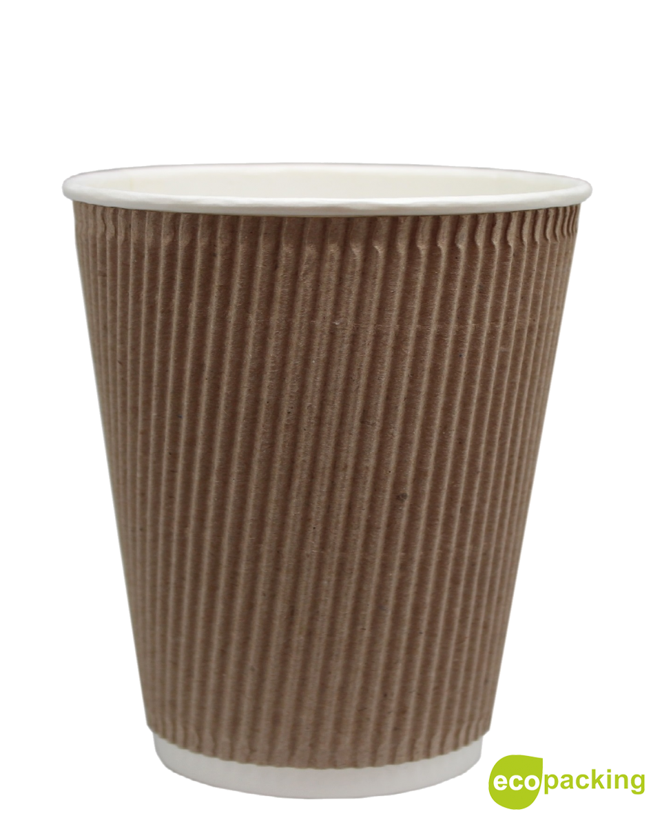 Описание товараГофрированный бумажный стакан 250мл для горячих и холодный напитков ,цвет картона -натуральный