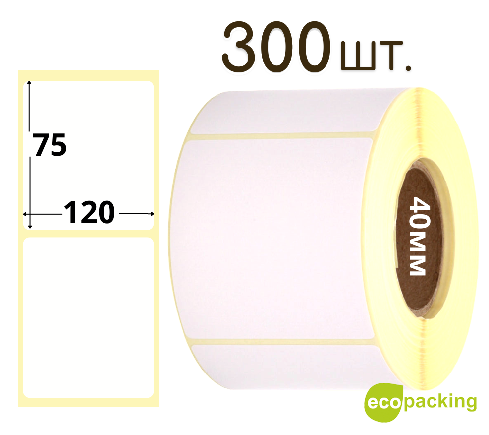Термоэтикетка 75х120мм Eco (рулон 300шт)