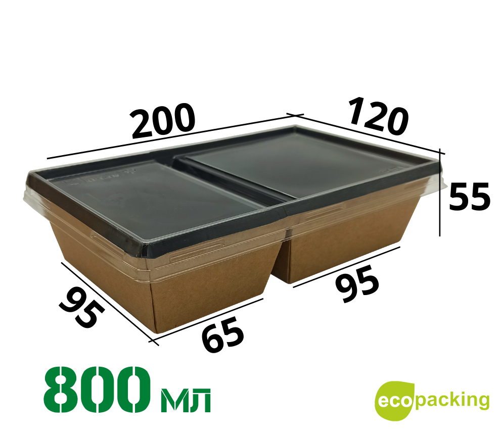 Описание товараДвухсекционный бумажный контейнер с прозрачной крышкой (60%/40%)
