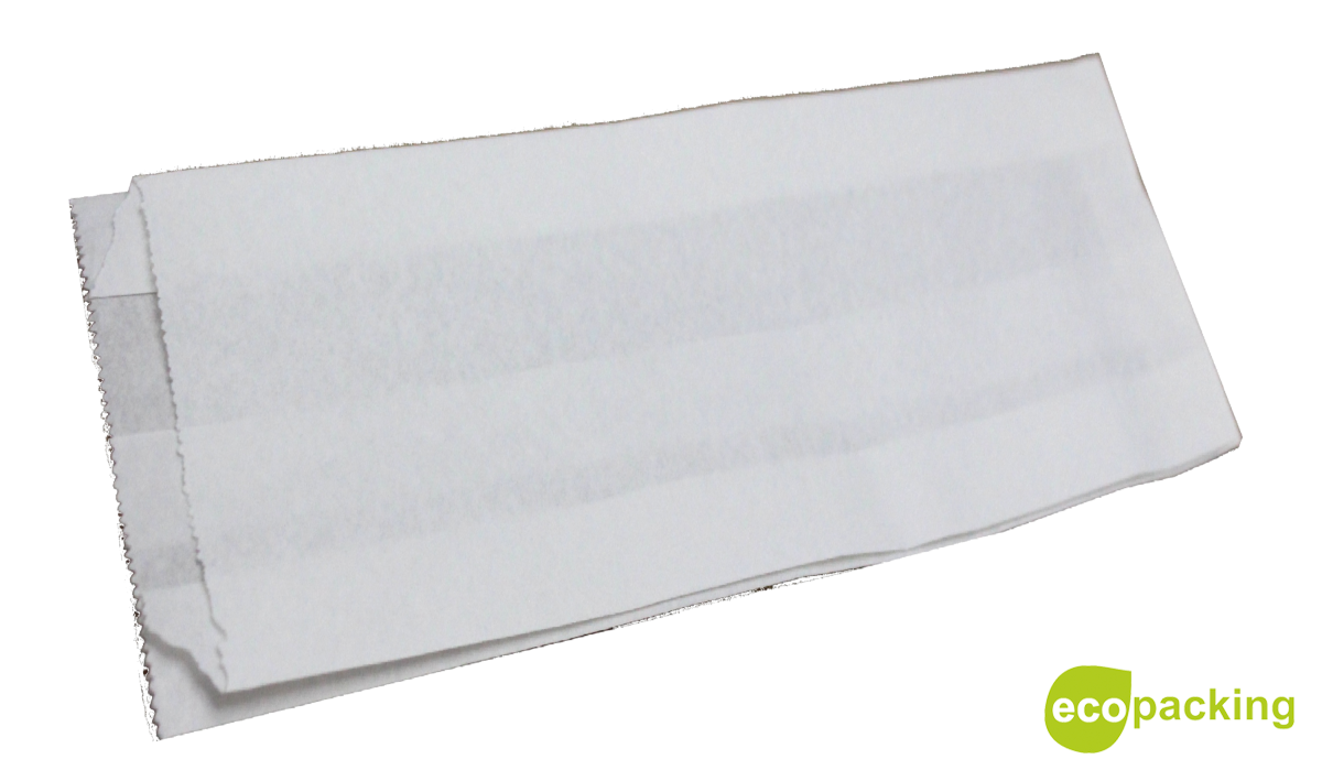 Бумажный пакет с повышенными барьерными свойствами из жиростойкой бумаги белого цвета.