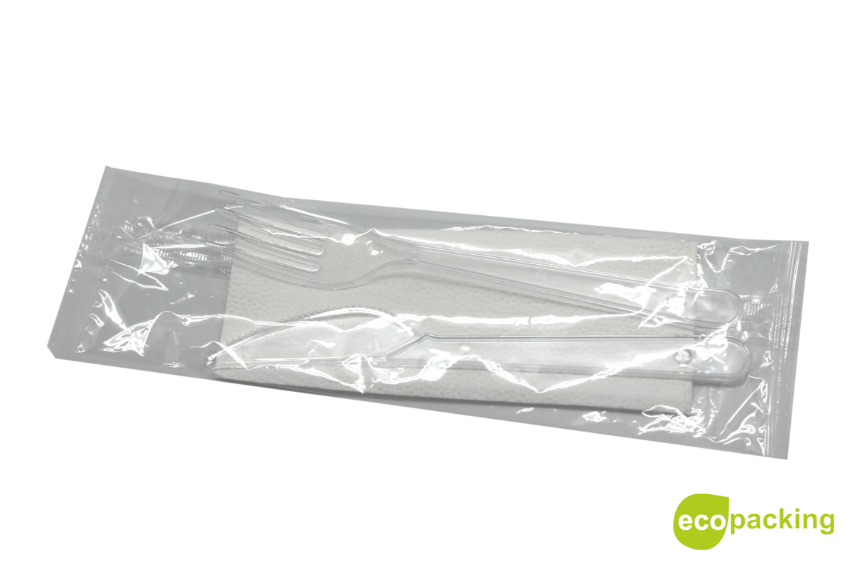 Комплект "ПРЕМИУМ" (вилка прозрачная, нож прозрачный, салфетка белая)
