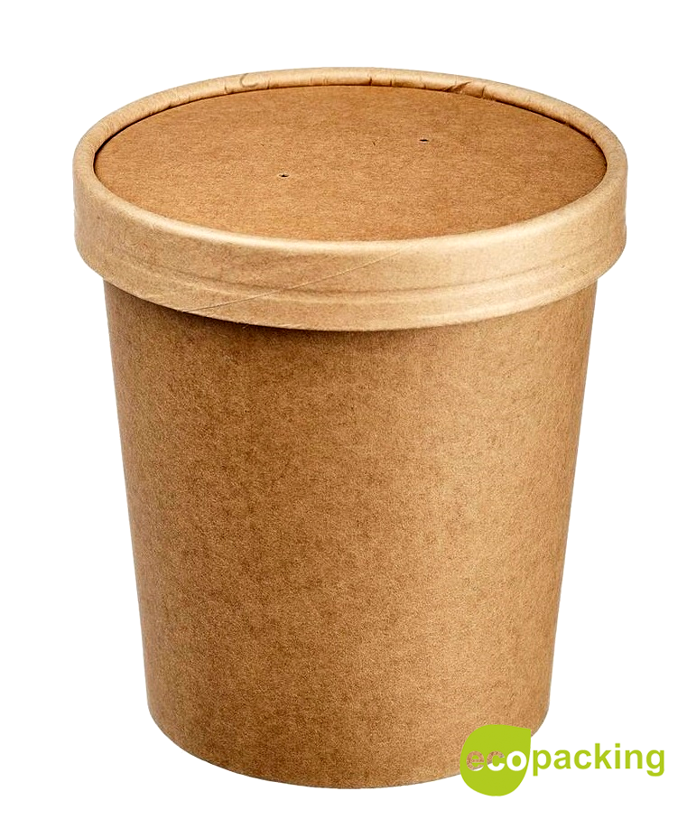 КАРТОННАЯ СУПНИЦА С КРЫШКОЙ 470МЛ "КРАФТ"(16С )